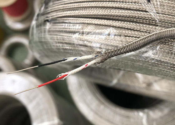 2x0.5 মিমি 2x0.6 মিমি 2x0.8 মিমি টাইপ ই থার্মোকপল এক্সটেনশন ওয়্যার মেটাল শিল্ড গ্লাস ফাইবার / পিএফএ নিরোধক থার্মোকপল ওয়্যার
